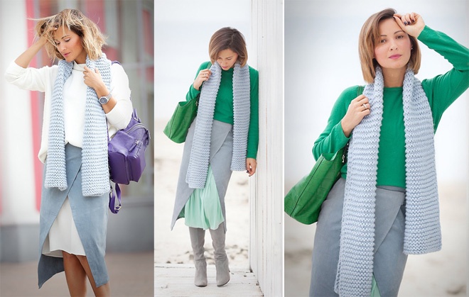 | Chỉ với 1 chiếc khăn len đơn giản, Ellena đã cho ra 4 set đồ đông chất lừ. |