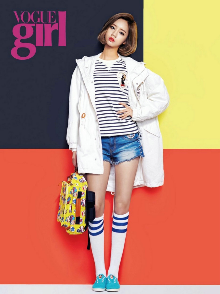 Cũng là crop-top với váy như HyunA trên InStyle, các bạn cũng có thể thay chân váy bằng một chiếc quần jeans boyfriend, tạo vẻ cá tính.