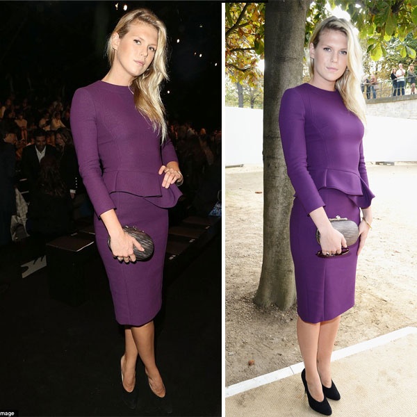 Alexandra Richards cũng chọn váy màu tím thanh lịch tới show diễn xuân hè 2014 của hiệu Elie Saab nằm trong khuôn khổ Tuần lễ thời trang Paris. |