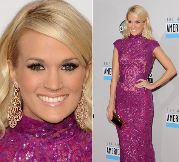 Chiếc váy ren tím của Carrie Underwood làm cô tự tin khoe khi đứng trước ống kính. |