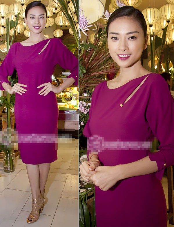 Ngô Thanh Vân toát lên vẻ đẹp sang trọng nhờ chiếc váy liền thân gam màu tím. |