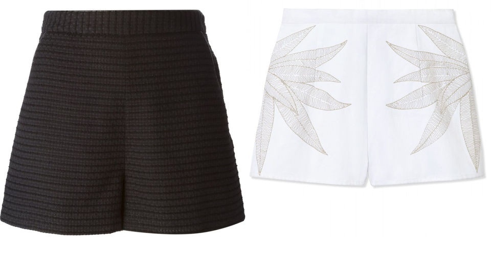 | Một vài mẫu shorts ngắn cạp cao đẹp mà bạn có thể tham khảo từ 2 thương hiệu là Tamara Mellon (428 USD), và Mara Hoffman (182 USD). |