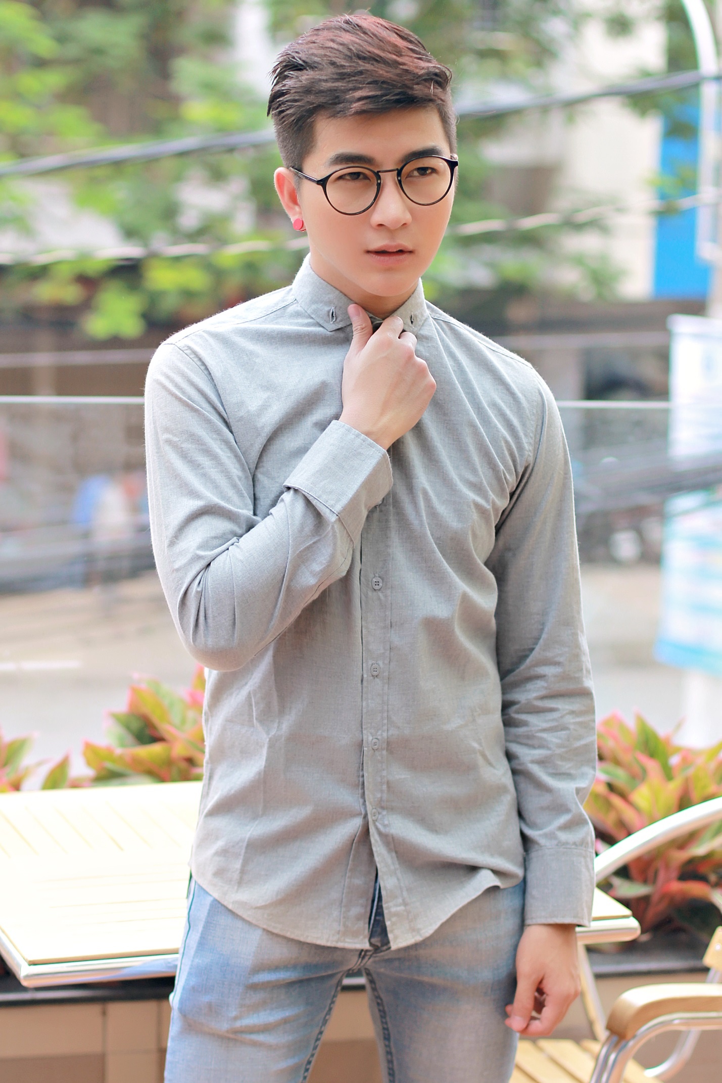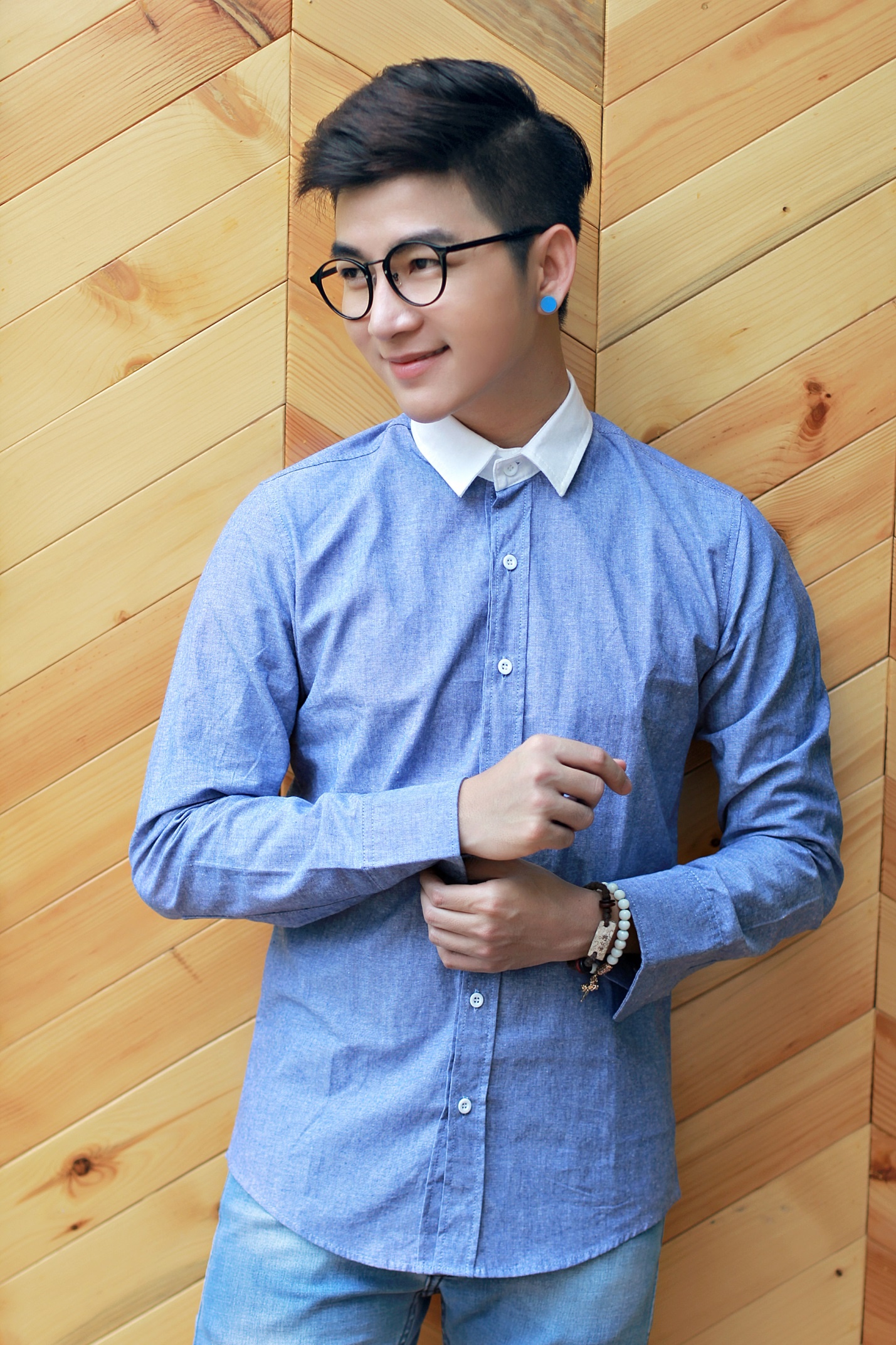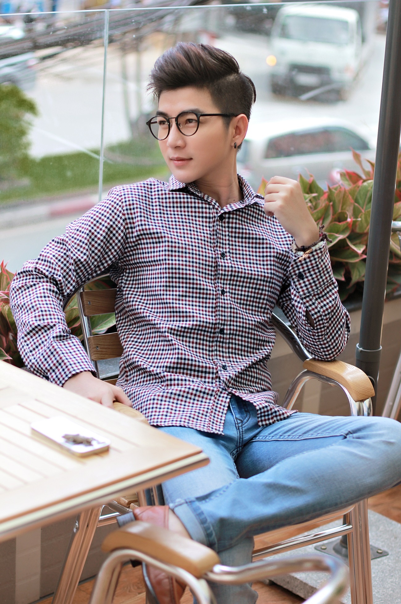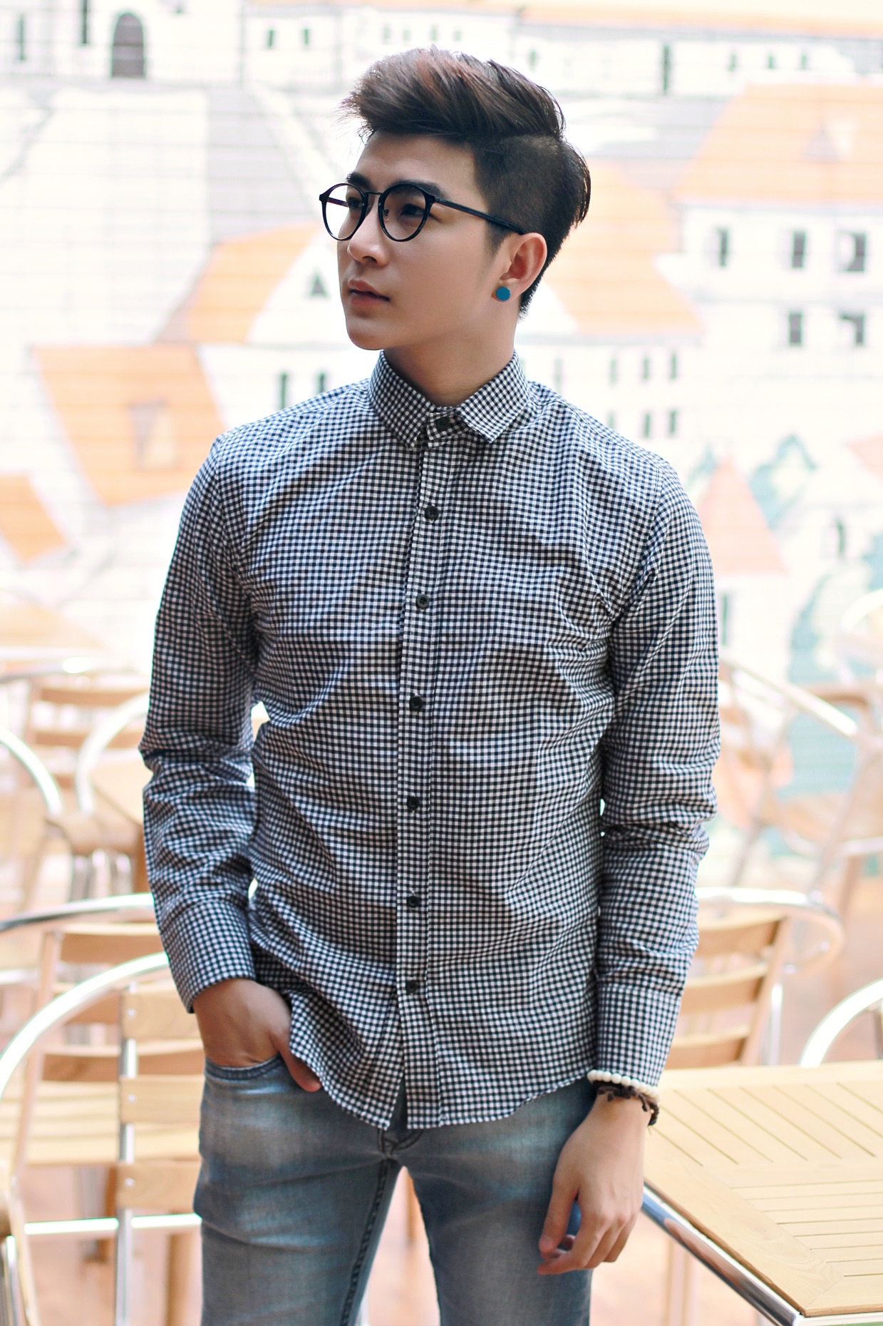 | Thư sinh với áo sơ mi caro cổ điển. |