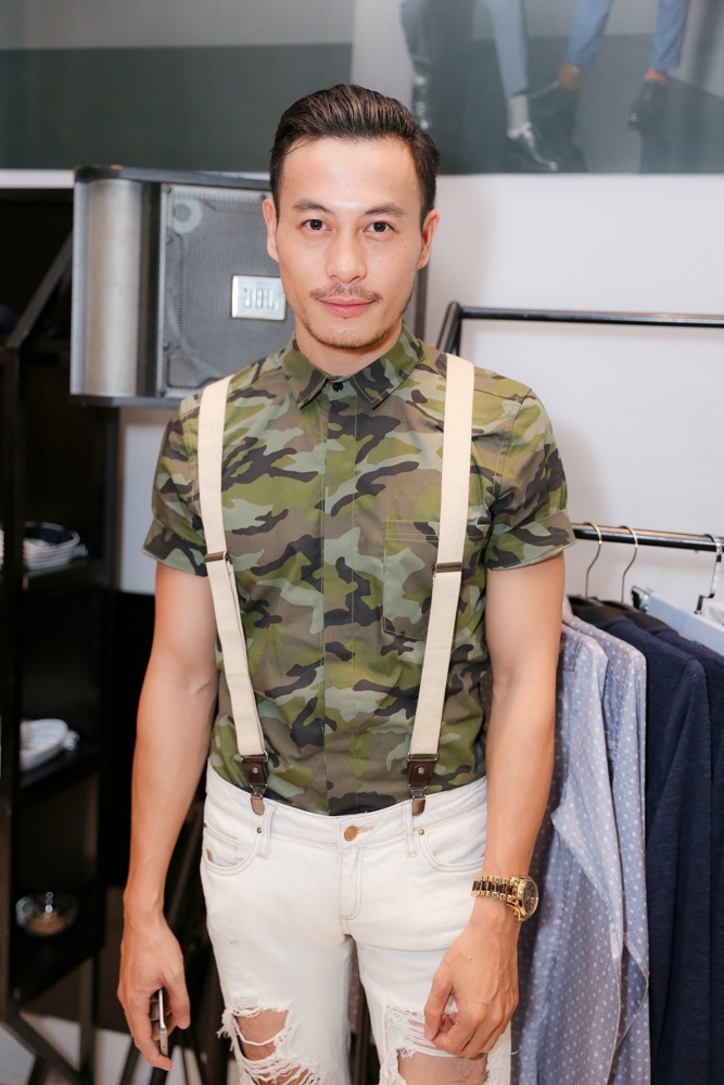 | Trương Thanh Long nổi bật với phong cách cá tính. Gần đây, nhà thiết kế 8X chuộng mốt quần jeans xé, áo họa tiết quân đội mạnh mẽ, tóc vuốt ngược hợp xu hướng. |