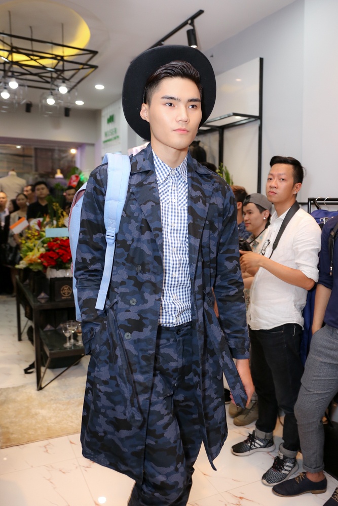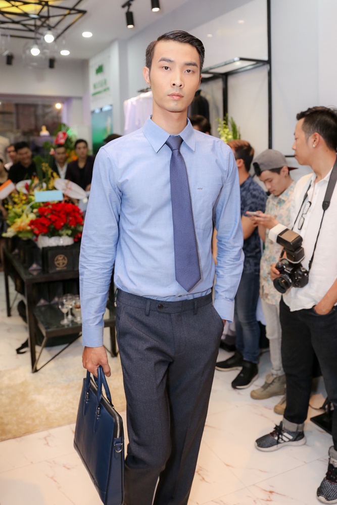 | Công Toàn, nam người mấu trưởng thành từ Vietnam's Next Top Model cũng tham gia trình diễn. Anh diện bộ cánh phong cách lịch lãm. |