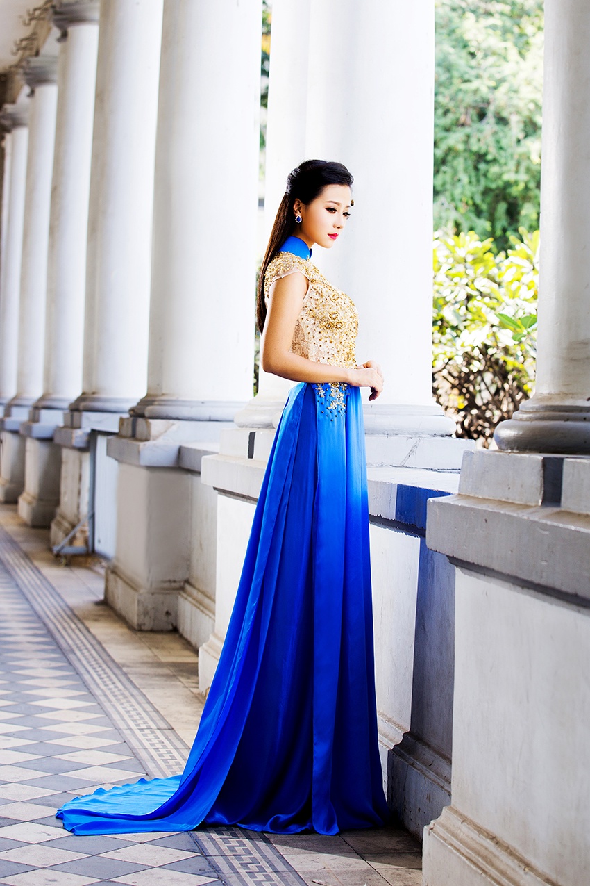 Ngoài các vai diễn, Khánh Hiền còn rất chăm chút hình ảnh cá nhân. Thời gian rảnh, cô cùng ê-kíp thực hiện bộ ảnh làm mới phong cách thời trang. Cận Tết Bính Thân, người đẹp sinh năm 1991 nhận lời nhà thiết kế Minh Châu, thể hiện bộ sưu tập áo dài xuân đa sắc.