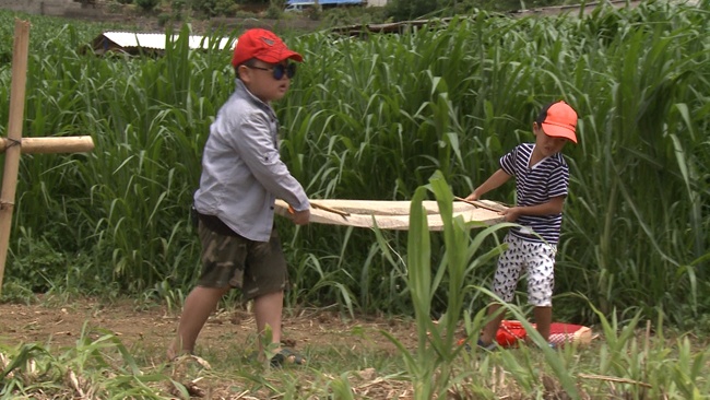 Ngoài Totti, Chíp, Bi và Suti đều gặp khó khăn trong việc vượt qua chỗ lội. Rất may, con trai danh hài Xuân Bắc phát hiện có một tấm gỗ nhỏ nằm trong ruộng ngô. Cậu bé lập tức gọi các bạn lấy nó làm cầu vượt.