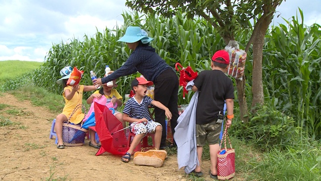 Các bé hoàn thành nhiệm vụ giao sữa cho bác Leng Keng.