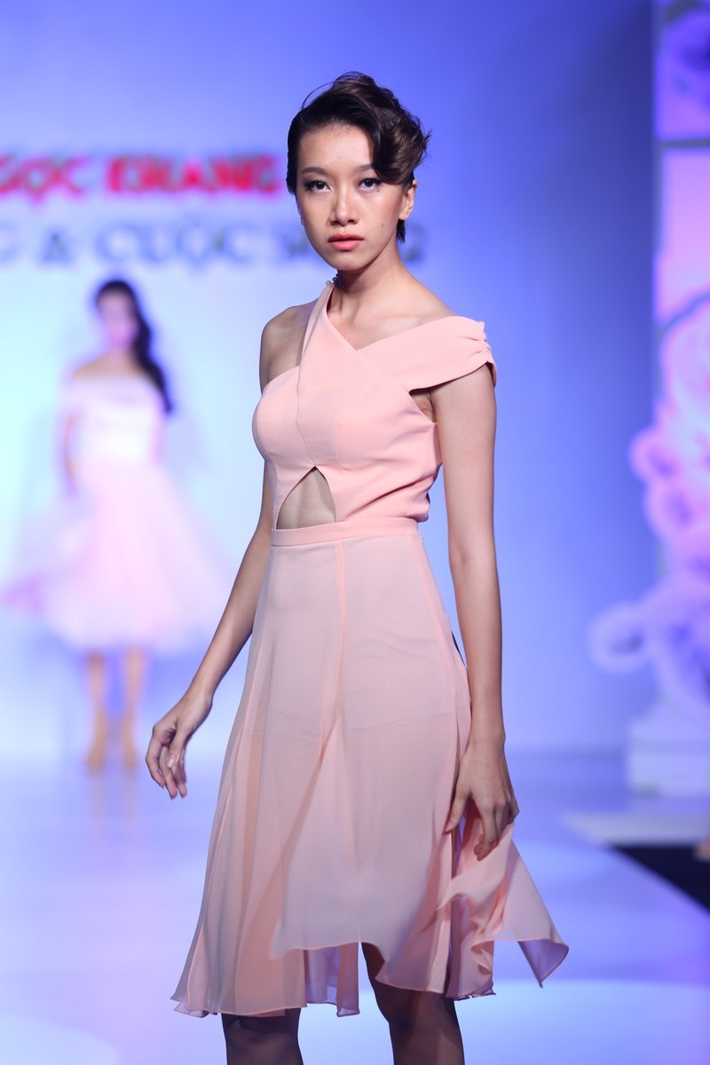 Trên sàn diễn chương trình Thời trang & Cuộc sống, diễn viên Ngọc Lan cùng bạn trai Đoàn Thanh Tài đảm nhận vai trò vedette khi giới thiệu BST của NTK Tăng Thành Công. Đứng cạnh người yêu, nữ diễn viên sở hữu nụ cười thu hút tự tin sải bước trên đường băng.