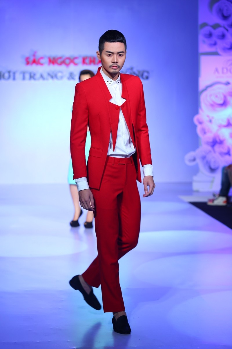 Dương Mạc Anh Quân làm quý ông lịch lãm với bộ vest màu đỏ bắt mắt.