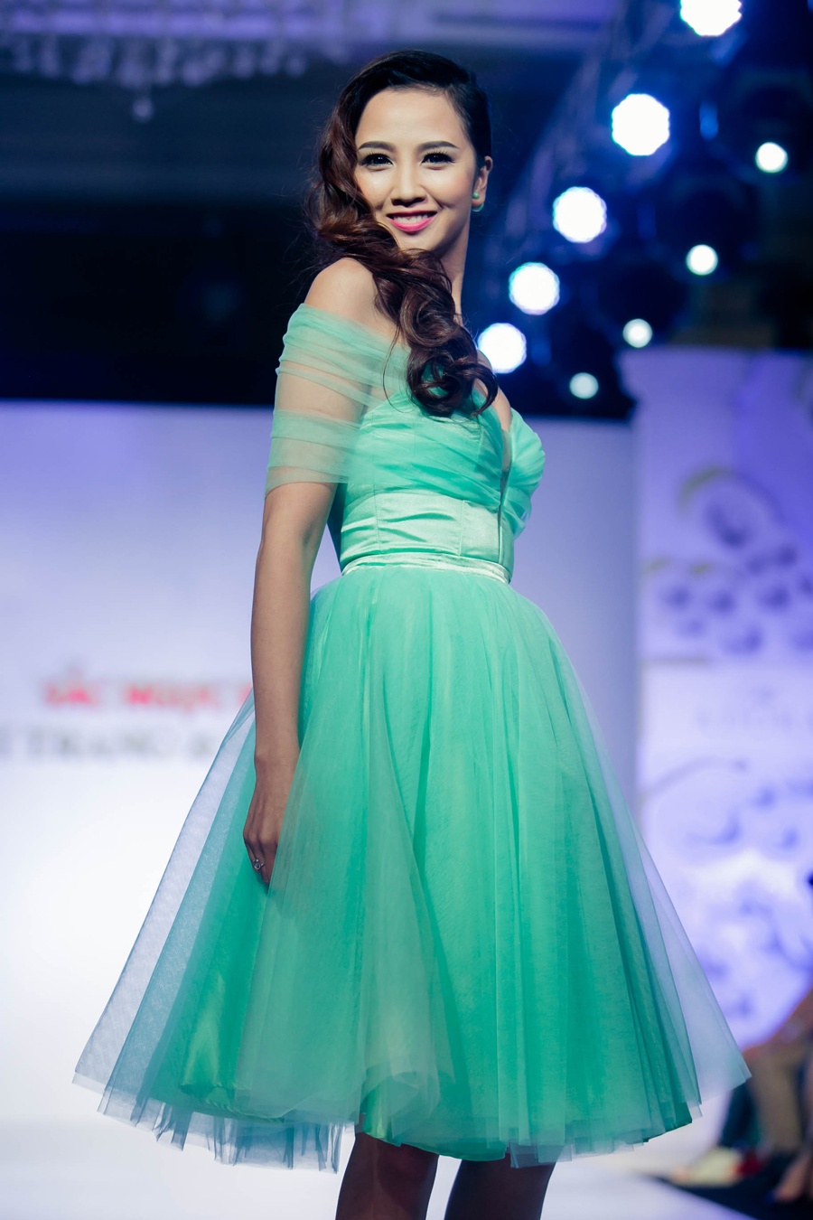 Dáng váy bồng xòe nữ tính, giúp nữ người mẫu lôi cuốn trên sàn diễn.