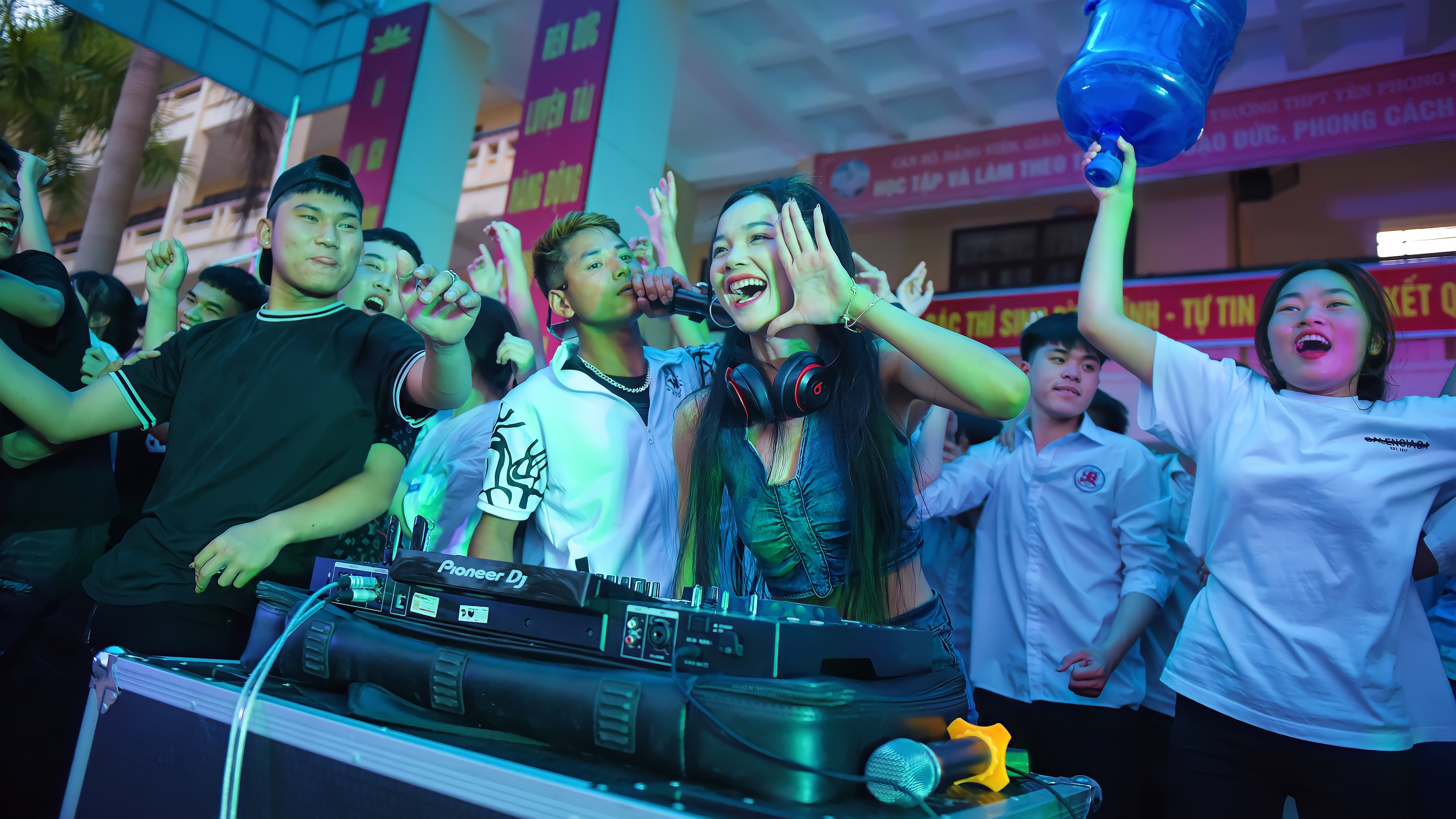 | Tôi chủ yếu nhận làm DJ ở các sự kiện khai trương, bữa tiệc. Gần đây, tôi nhận biểu diễn tại một trường cấp 3 ở Bắc Ninh. Lần đầu làm trong môi trường này, tôi cảm thấy có nhiều cảm xúc mới mẻ và biết lưu ý hơn về vấn đề trang phục. |