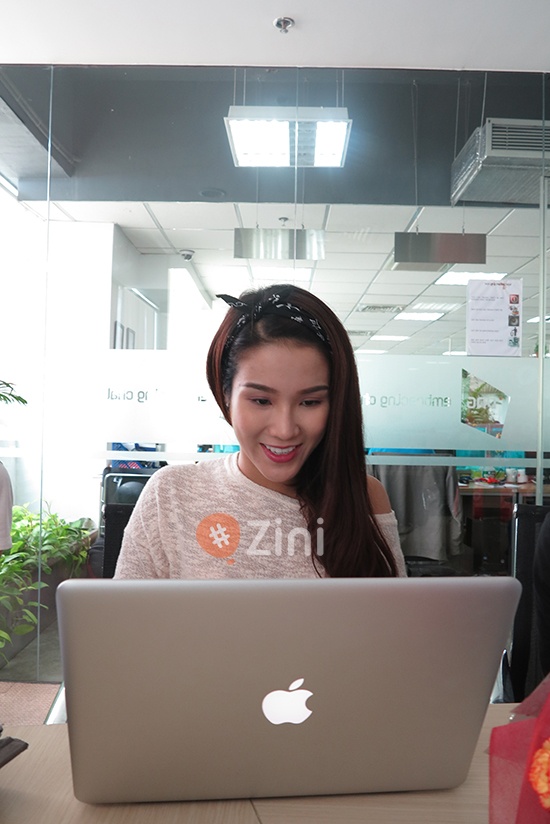 | Cô tự tin tạo dáng theo "chuẩn mẫu" sau khi kết thúc buổi giao lưu trực tuyến. |