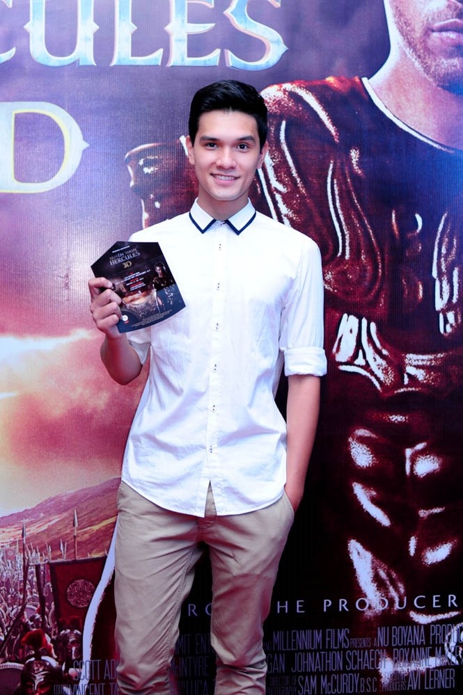 | Ông bố một con Lâm Vinh Hải bảnh bao đi xem phim kể về Hercules. |
