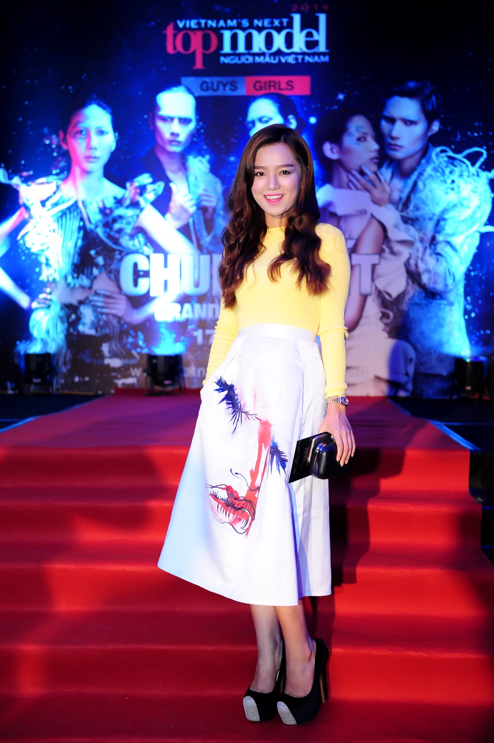 Quán quân Fashionista Vietnam xuất hiện cá tính bên những tín đồ sành mốt của làng giải trí Việt trong sự kiện chung kết Vietnam's Next Top Model diễn ra vào tối 17/1.