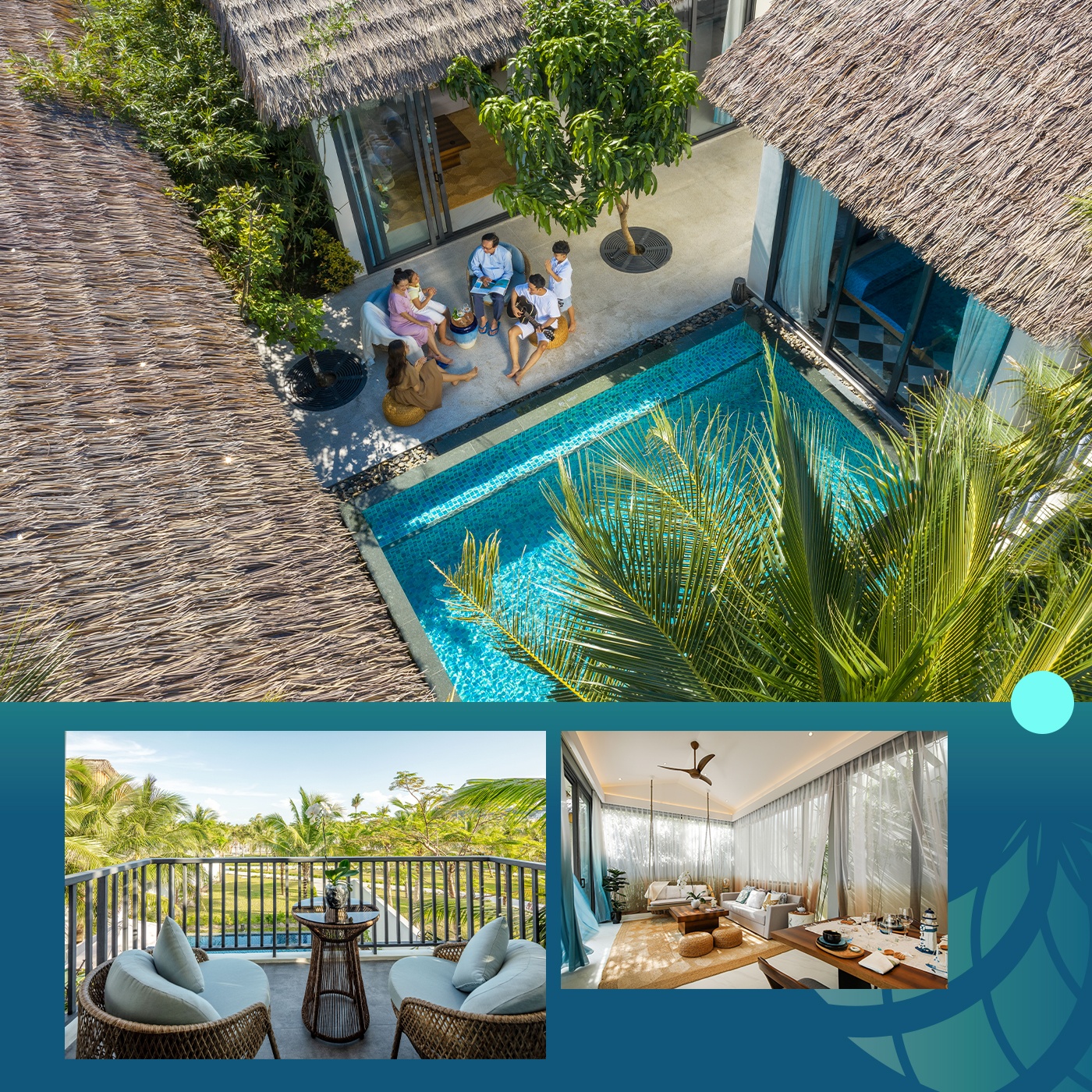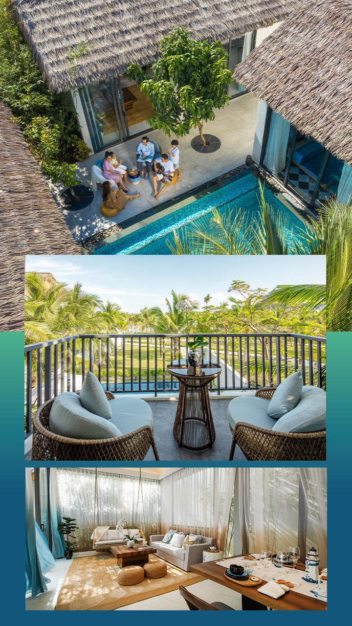 Thiết kế tổng thế của khu nghỉ dưỡng có hình dẻ quạt, hướng trọn vẹn tầm nhìn khoáng đạt tới đại dương khiến mọi biệt thự tại New World Phu Quoc Resort đều sở hữu không gian riêng tư, trong lành, đón gió biển vào từng ô cửa. Từ hàng dừa ngả bóng trên kênh, hàng nứa truyền thống tới những mái rơm thân thuộc lợp trên mỗi nếp nhà… đều được chủ đầu tư tái hiện trong các chi tiết kiến trúc của khu nghỉ dưỡng, thể hiện sự trân trọng tối đa cảnh quan thiên nhiên, cũng như văn hóa bản địa của đội ngũ thiết kế và chủ đầu tư.