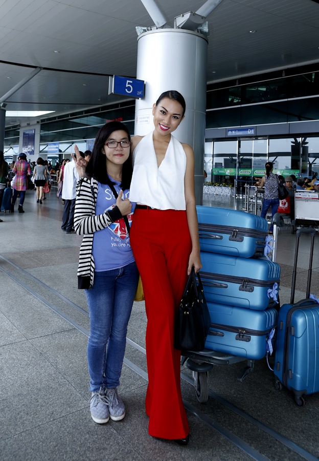 Nhiều người hâm mộ đã đến để chúc mừng và chia tay người đẹp ở sân bay Tân sơn nhất.