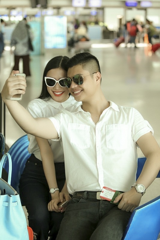 Chân dài cá tính nổi bật tại sân bay với trang phục sành điệu và hợp mốt. Cô và nhóm người mẫu lên đường sang Thái Lan làm khách mời cho cuộc thi Mr. Thailand.