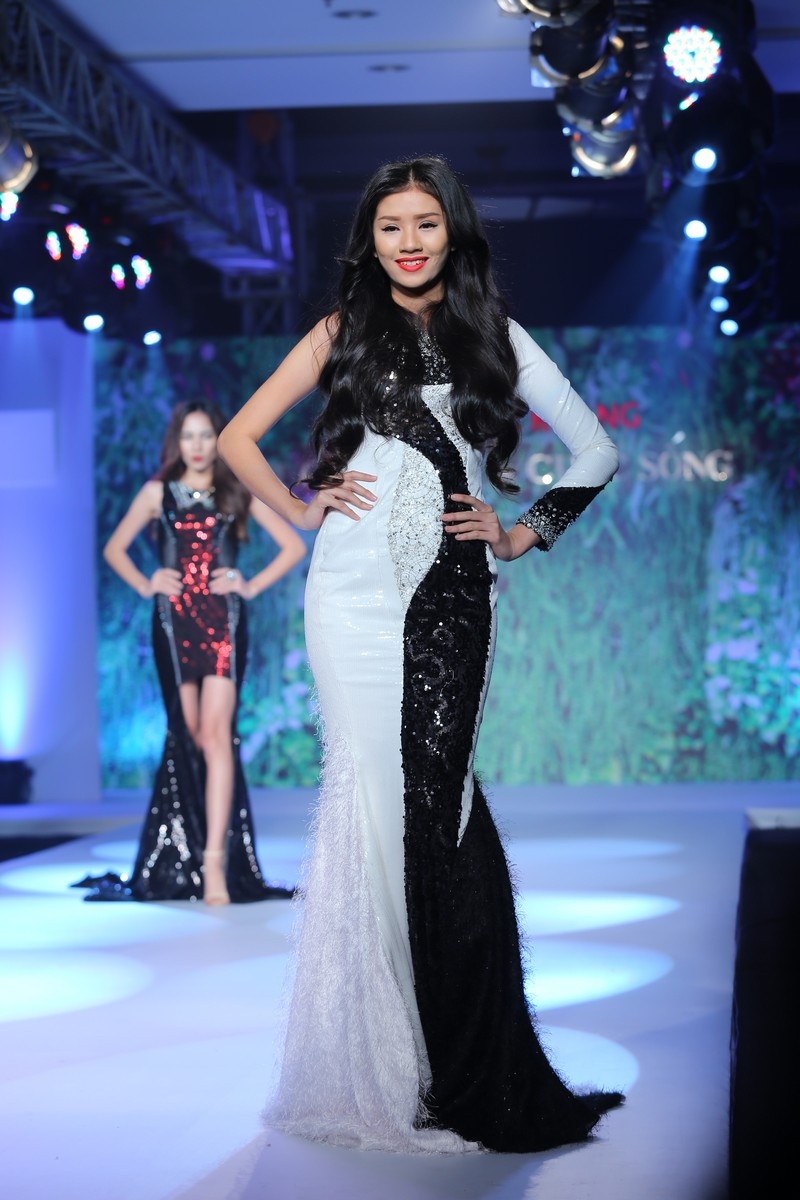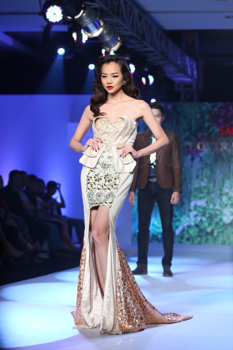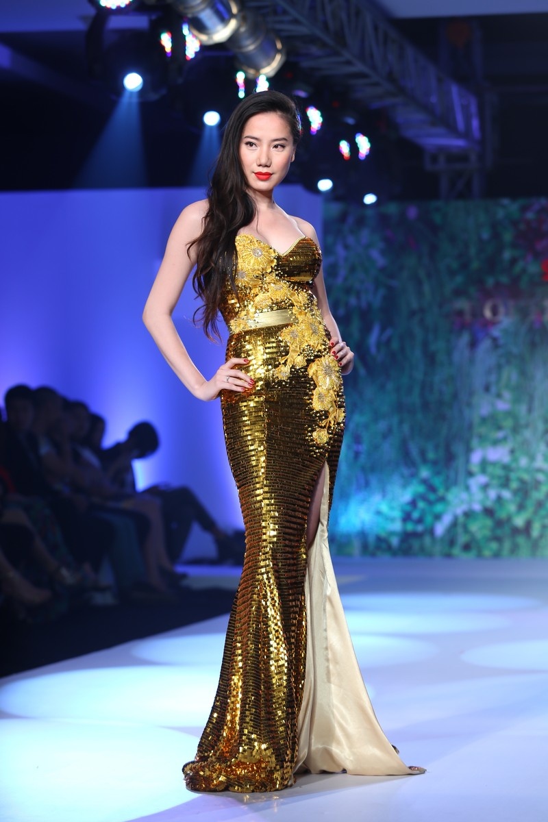 Trang phục đính hạt tinh tế được các người mẫu thể hiện khá ấn tượng.