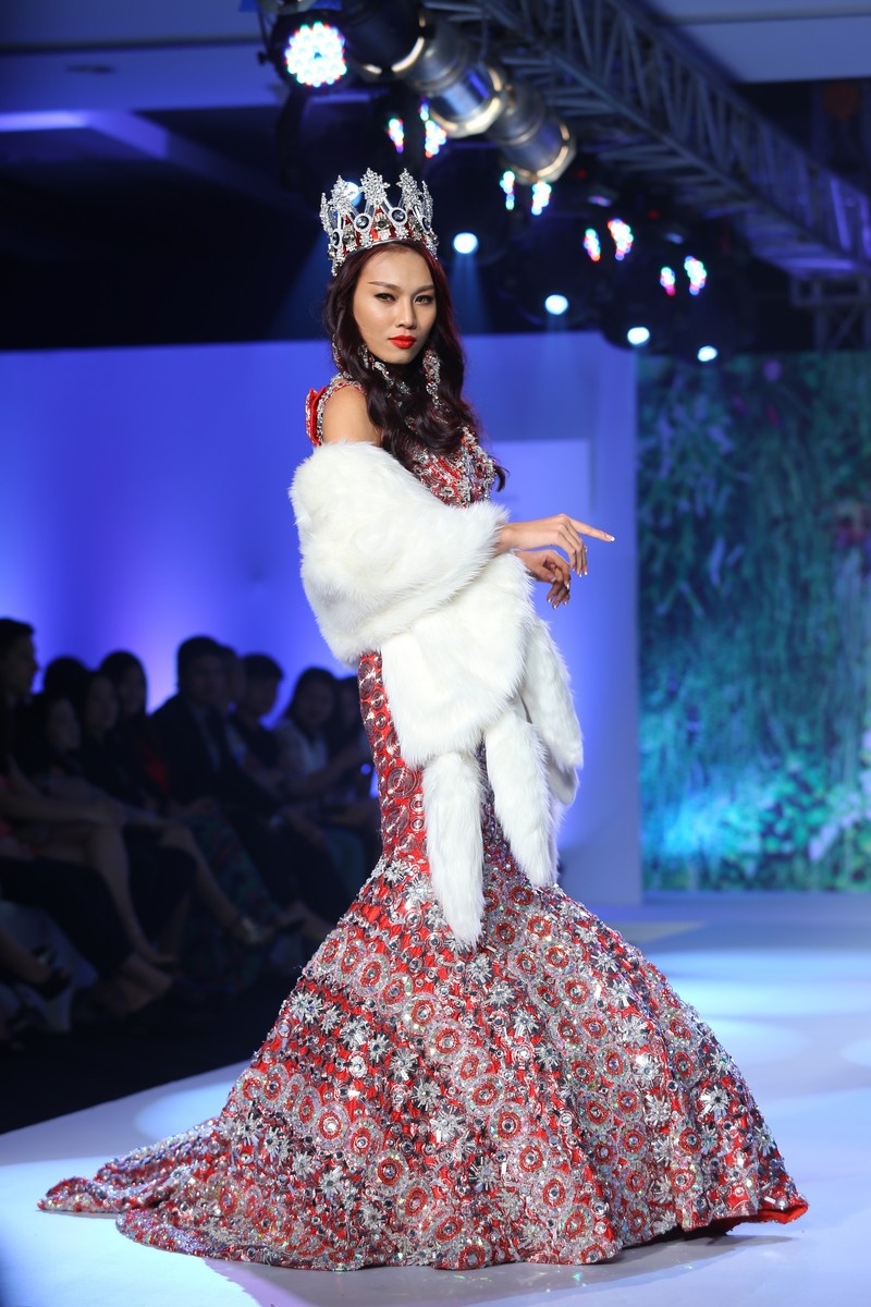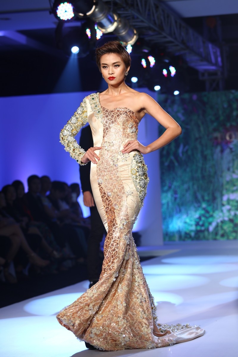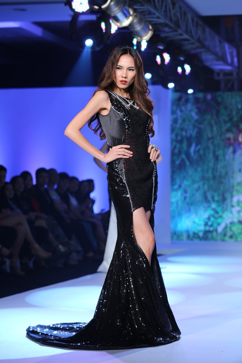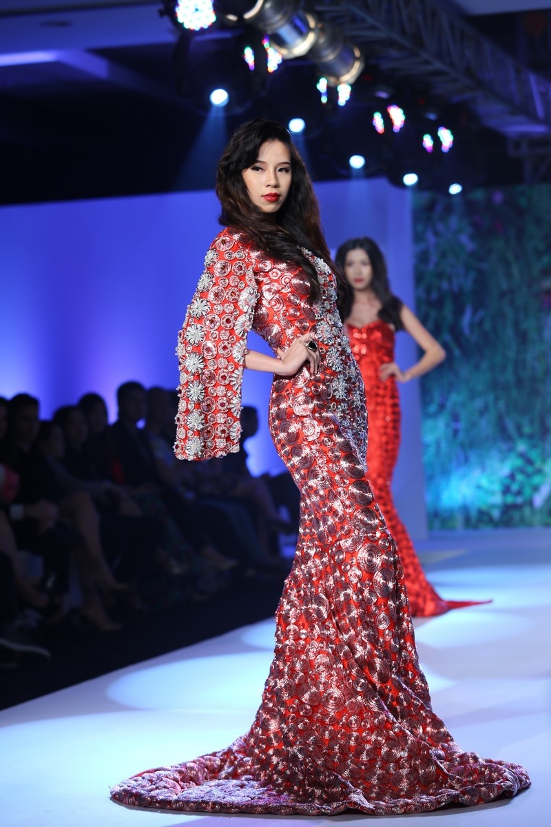 Trang phục đính hạt tinh tế được các người mẫu thể hiện khá ấn tượng.