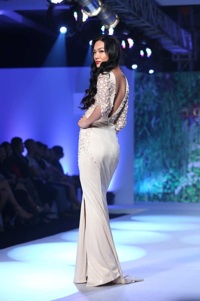 Mâu Thanh Thủy tự tin trình diễn mẫu váy kết hạt pha lê công phu.