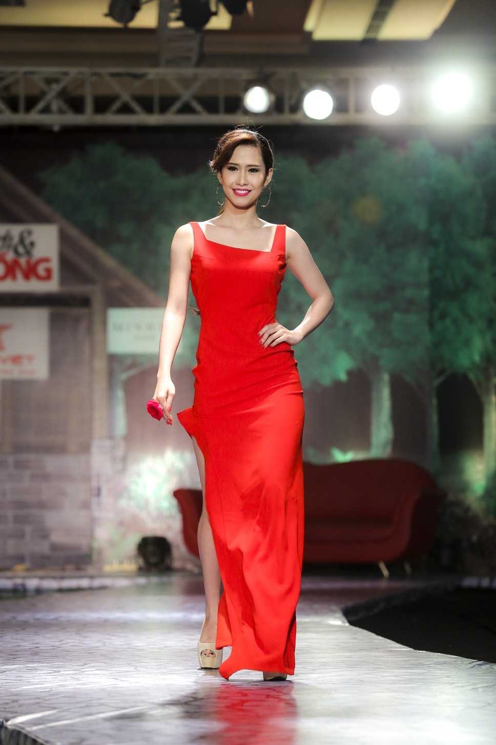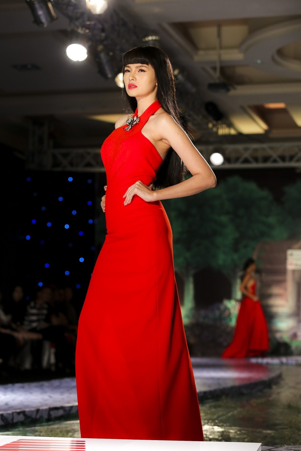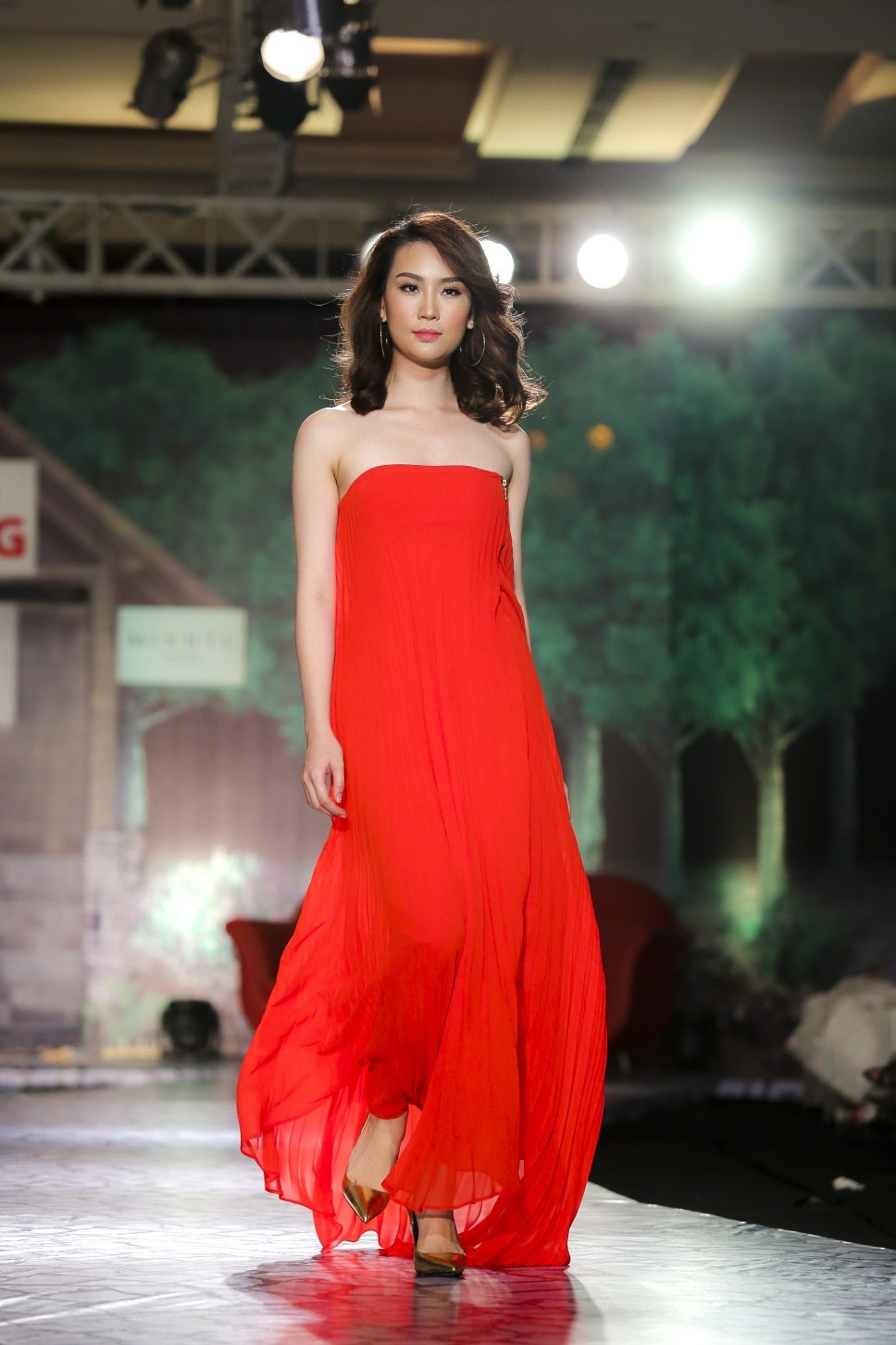 | Diễm Châu kiêu hãnh khi diện váy tông đỏ, trình diễn với phong cách tự tin, chuyên nghiệp. |