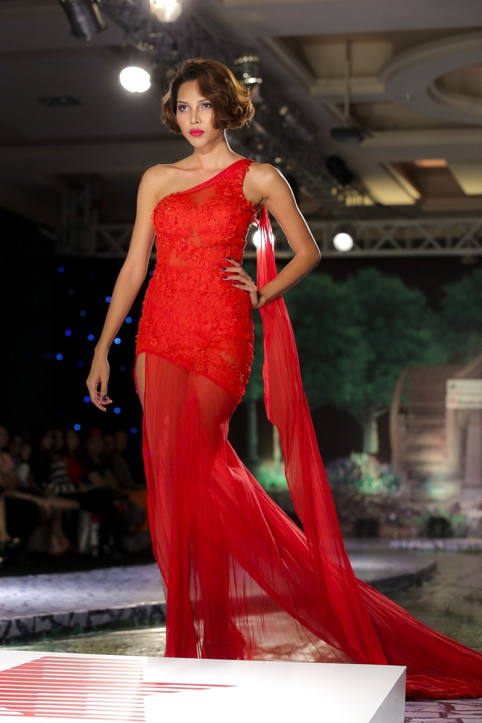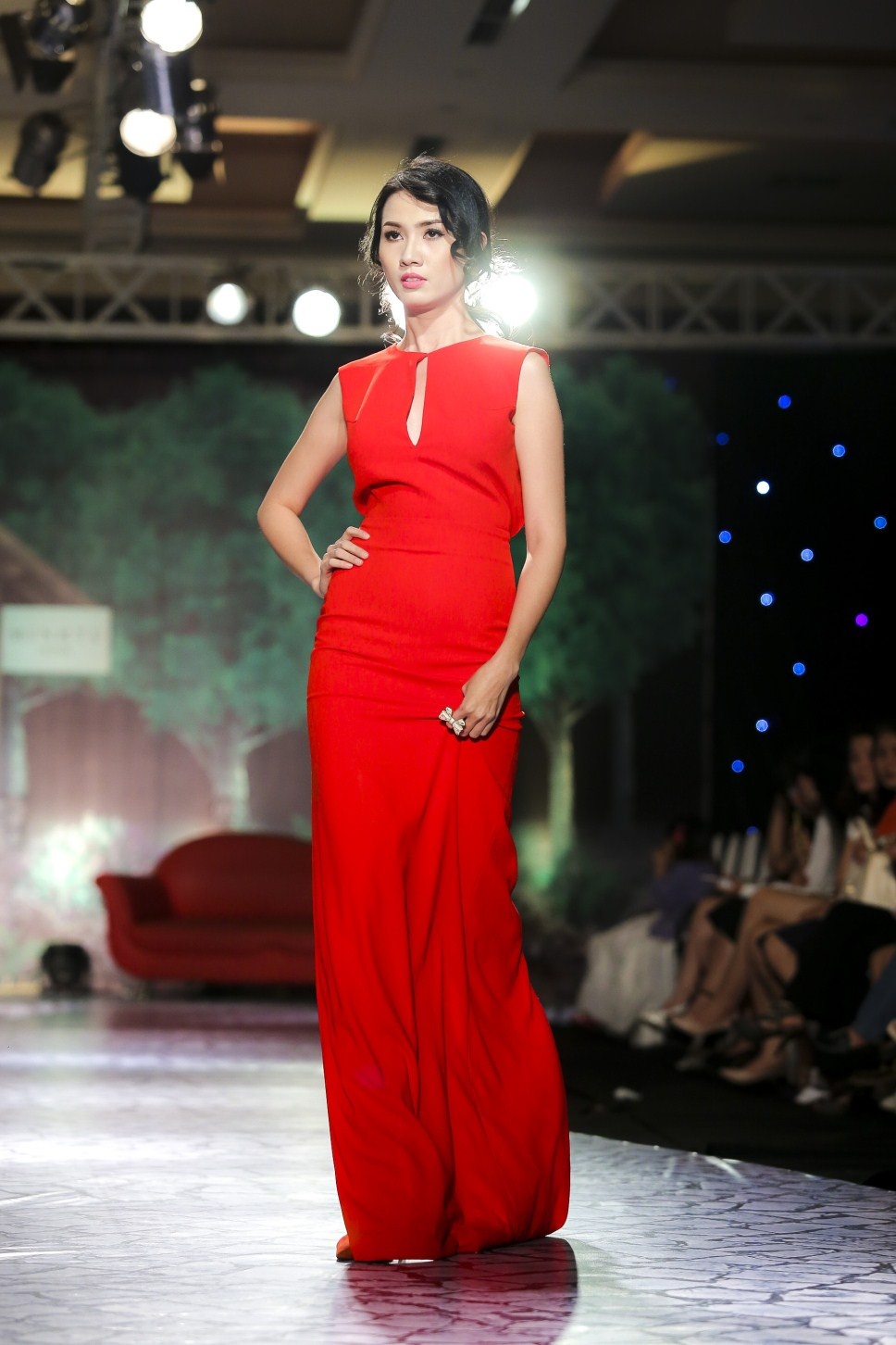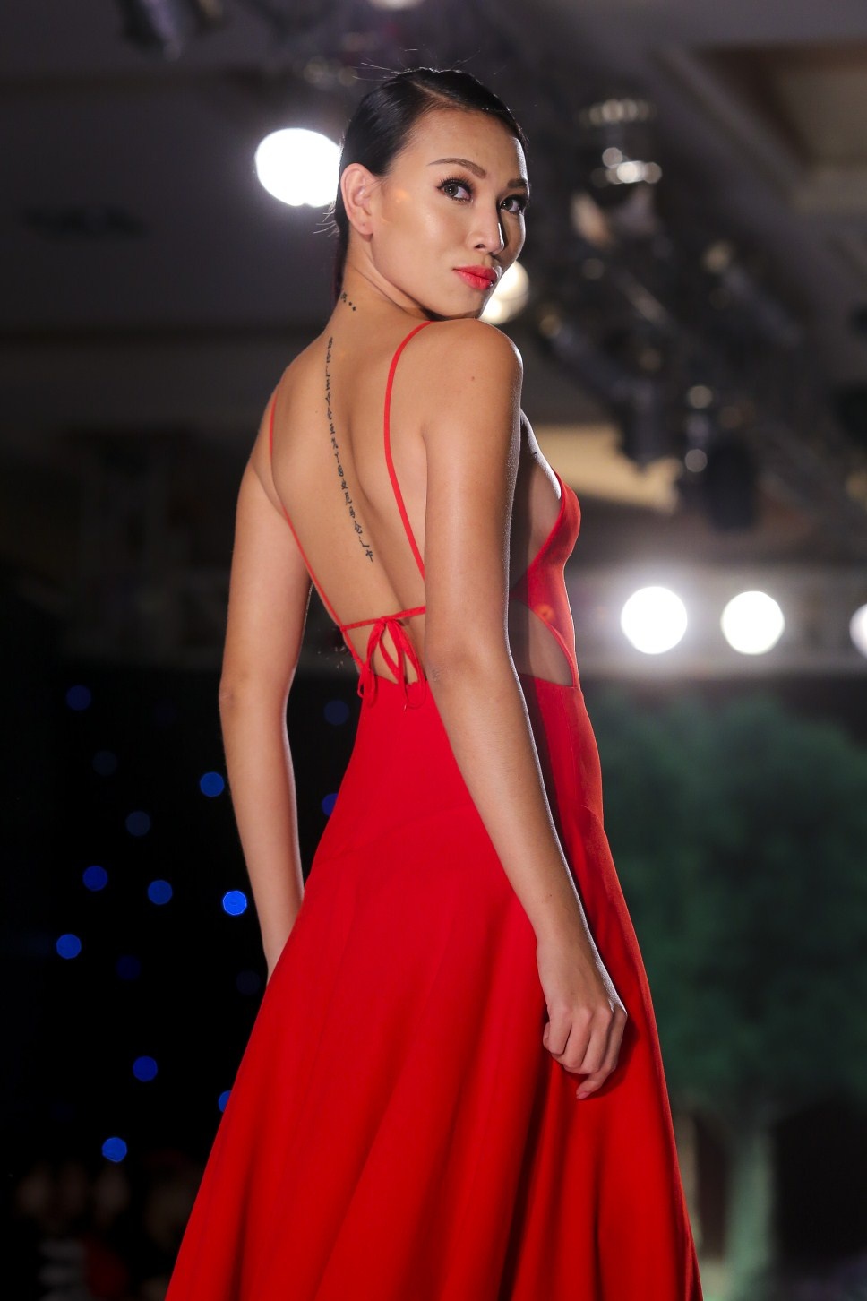 | Diễm Châu kiêu hãnh khi diện váy tông đỏ, trình diễn với phong cách tự tin, chuyên nghiệp. |