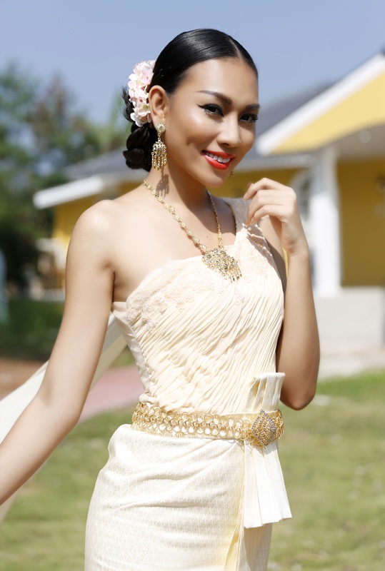 Nhờ làn da nâu bánh mật cùng khuôn mặt sắc sảo nhưng vẫn chứa đựng nét đằm thắm, đại diện của Việt Nam được khen ngợi là khá phù hợp với trang phục truyền thống của xứ sở chùa vàng.