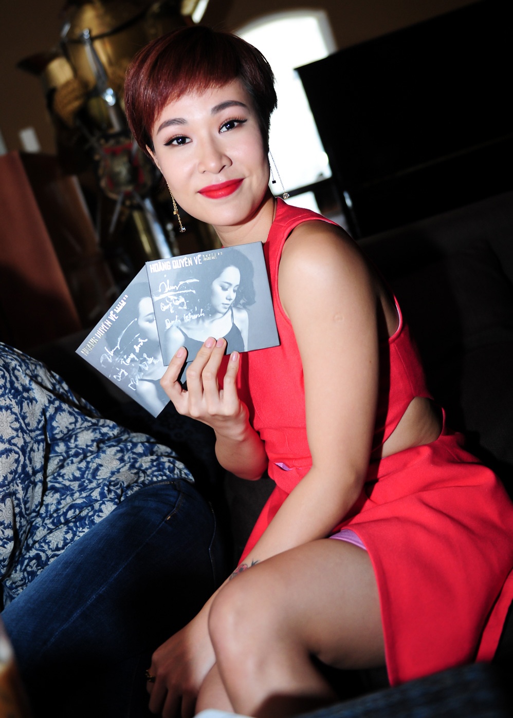 Á quân The Voice 2012 mặc đơn giản khi đến mừng Hoàng Quyên ra mắt album nhạc xưa "Về".