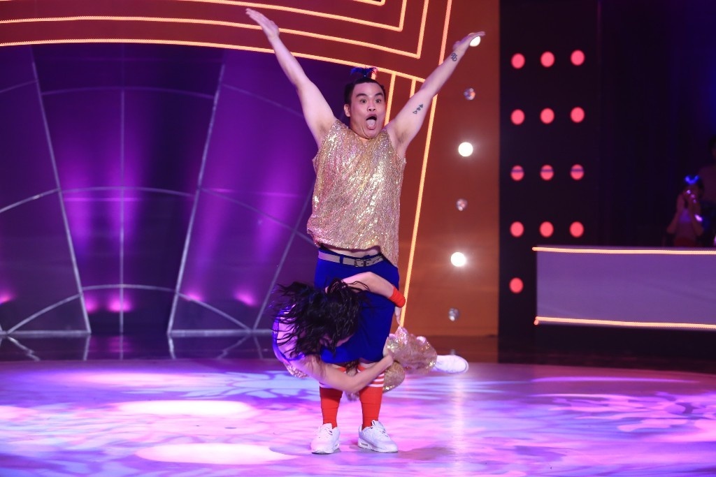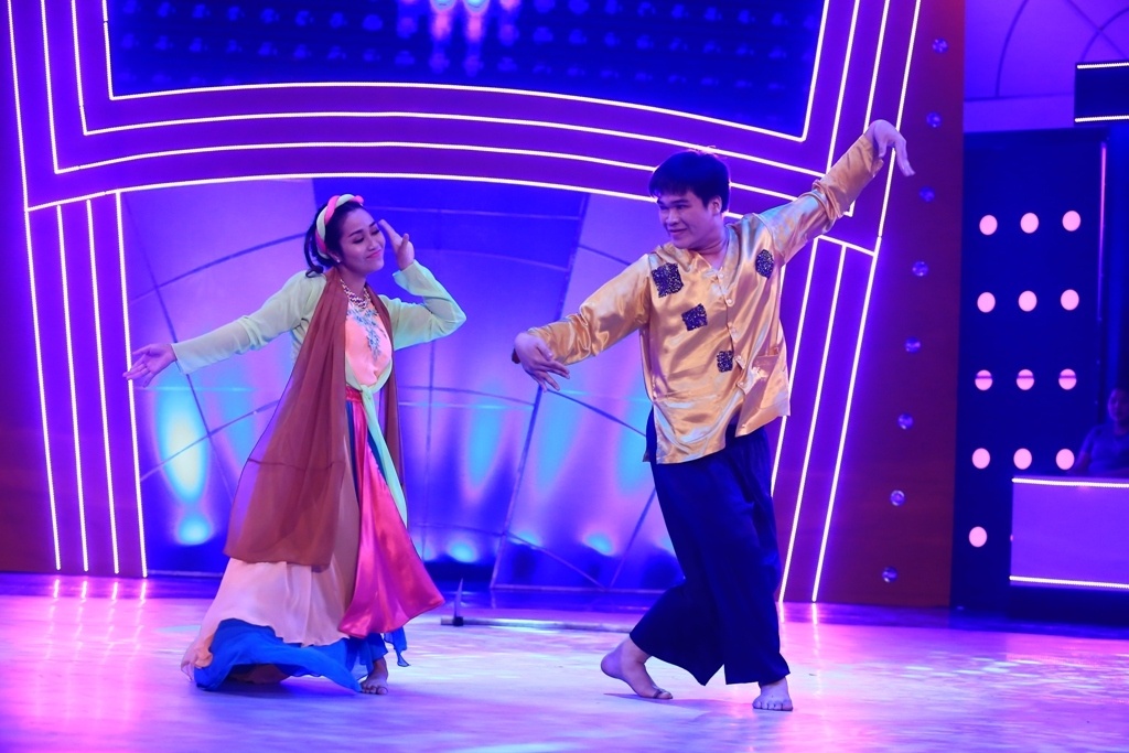 Anh Quang và Thùy Vân khiến giọng ca Tuổi hồng thơ ngây phải thốt lên lời khen ngợi "bùng nổ" cho tiết mục xuất sắc của họ. Hoài Linh cũng trầm trồ thán phục khi cả 2 thể hiện những động tác khó. Anh nhận được 12 điểm. |