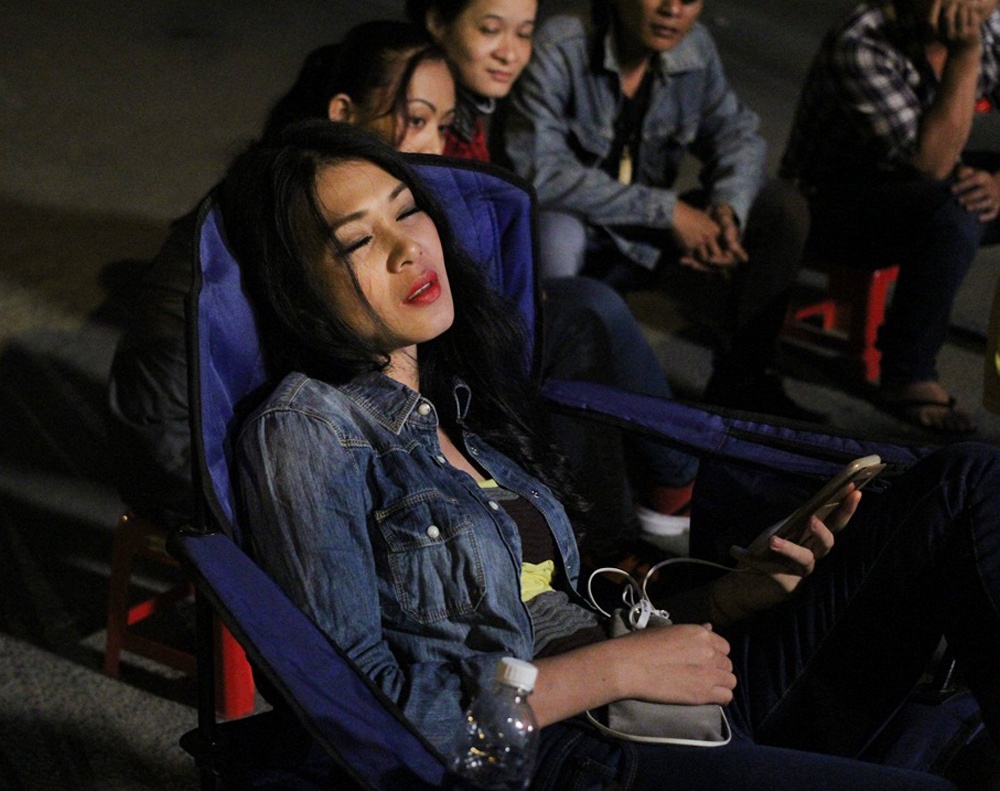 | Trong một cảnh quay, bà xã đạo diễn Áo lụa Hà Đông tự tin diện áo crop top dù không sở hữu vòng eo con kiến. Trong phim Đổi đời, khi nói về kỷ niệm lúc quay, Đinh Y Nhung cho biết, cô còn nhớ như in phân cảnh hút thuốc lá. Vì không quen với khói thuốc nhưng phải hút liên tục nhiều lần khiến cô bị say. |