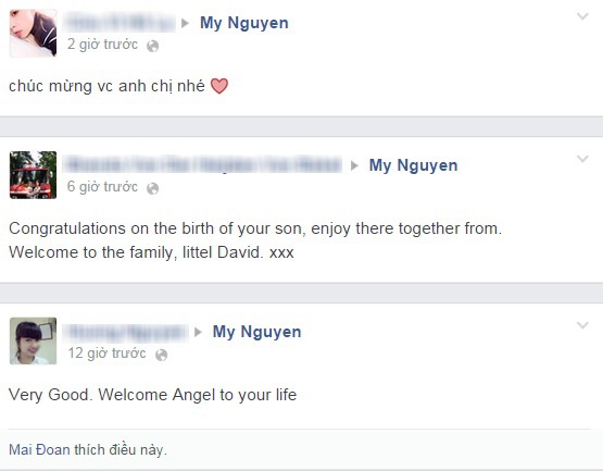 "Hãy tận hưởng cảm giác tuyệt vời khi được làm bố đi nhé Danny" - bình luận của Dave van Eekelen - một người bạn của cả hai vợ chồng.