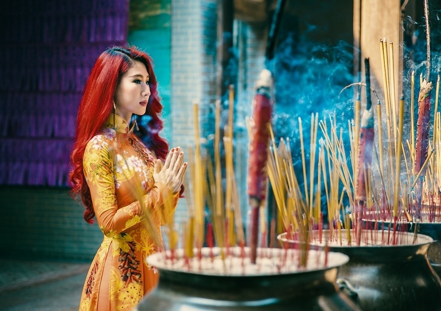 | Một trong những hoạt động không thể thiếu ngày đầu năm của DJ Oxy là đi lễ chùa, cầu chúc điều may mắn sẽ đến trong năm mới. |