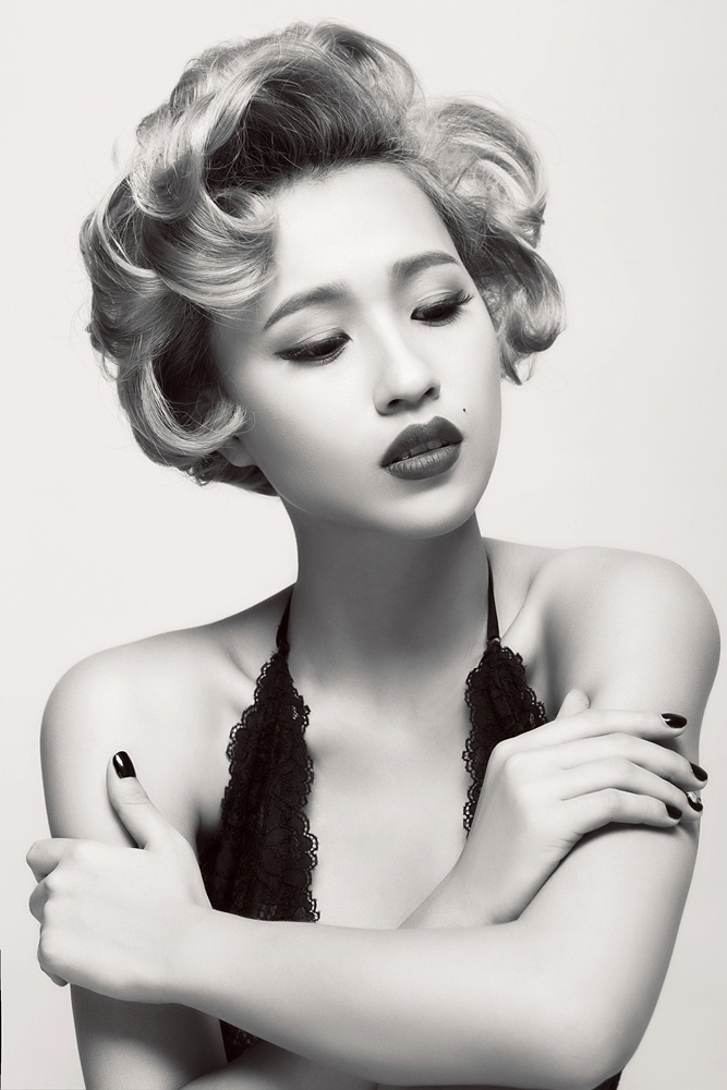 | Làn da trắng mịn và mái tóc hiện đại khiến nữ DJ dễ dàng nhập vai Marilyn Monroe. |