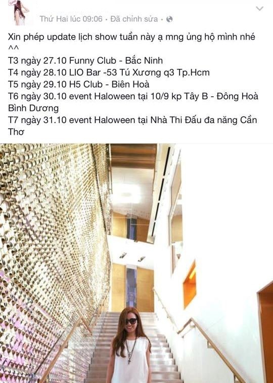 | Lịch diễn của Trang Moon trong tuần cuối cùng tháng 10. . |