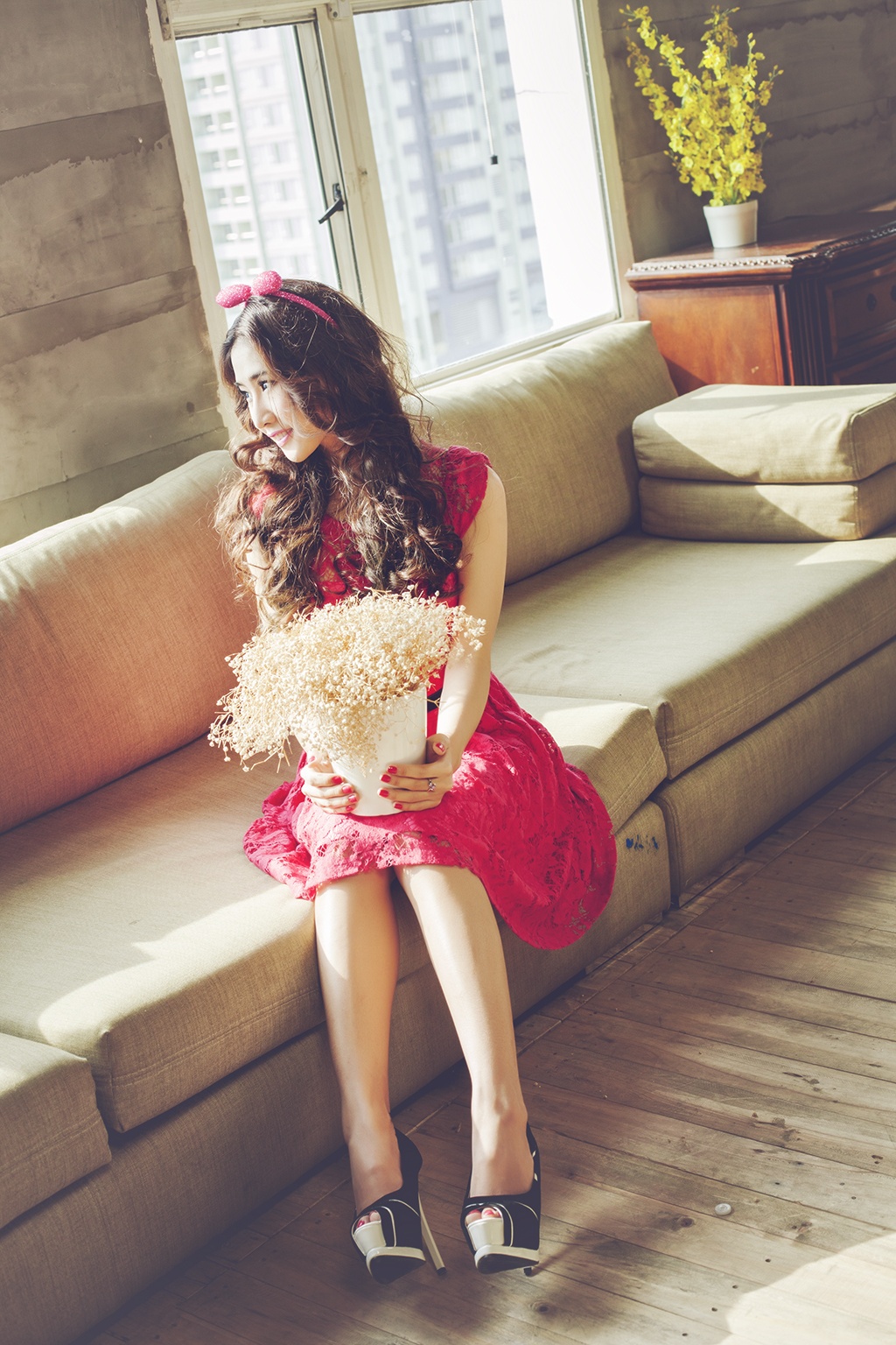 | Cô gái này tên thật là Cù Thị Ngọc, sinh năm 1993 tại An Giang. Trong bộ ảnh mới, cô diện đồ màu hồng. |