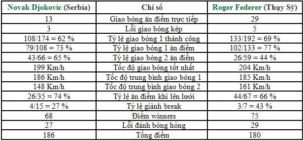 3-3: Game đấu khá giằng co nhưng Djokovic vẫn giành chiến thắng nhờ khả năng tận dụng thời cơ rất tốt.