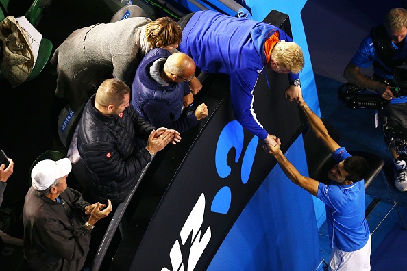 | Hạt giống số 1 ăn mừng chức vô địch Australian Open thứ 5 trong sự nghiệp với ông thầy Boris Becker và các thành viên trong ban huấn luyện. |