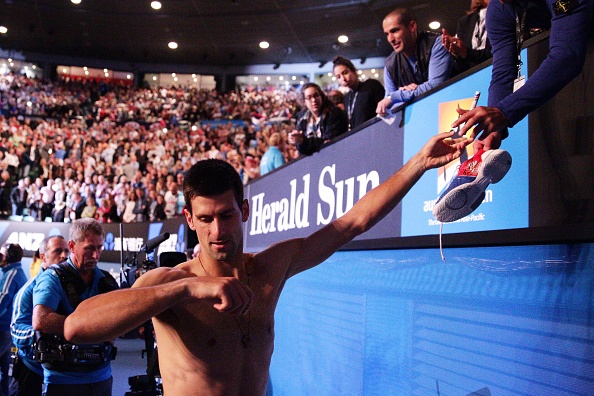 | Ngôi sao người Serbia lấy thêm áo đấu ném tặng người hâm mộ. |