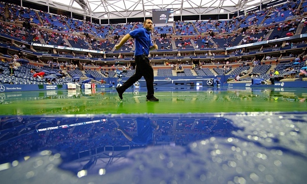 Cơn mưa nặng hạt ập xuống Flushing Meadows khiến trận chung kết trong mơ giữa Novak Djokovic và Roger Federer phải hoãn lại hơn 3 giờ đồng hồ so với dự kiến.