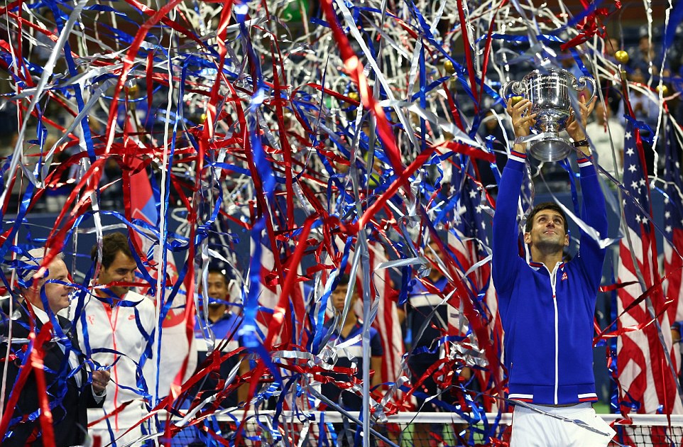 Giây phút đăng quang của Nole. Chức vô địch US Open là danh hiệu thứ Grand Slam thứ 3 của Nole trong năm 2015 sau Australian Open và Wimbledon. Ở giải đấu còn lại, Roland Garros, tay vợt số 1 thế giới cũng lọt đến trận chung kết và chỉ chịu gác vợt trước Stan Wawrinka.