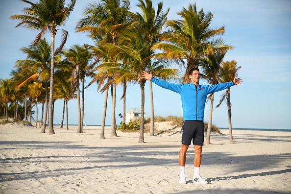| Ngôi sao người Serbia được ban tổ chức sắp xếp buổi chụp hình lưu niệm trên bãi biển Crandon Park, Miami. |
