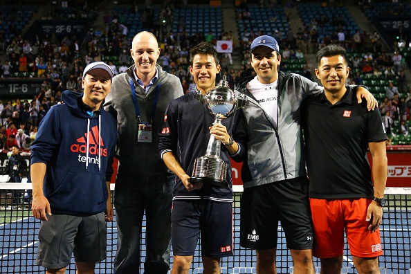 | Nishikori vui mừng sau khi đăng quang giải đấu ngay trên quê nhà. |