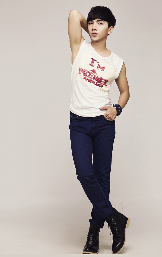| Quần jeans phom rộng xắn gấu đem đến nét phong trần cho chàng. |