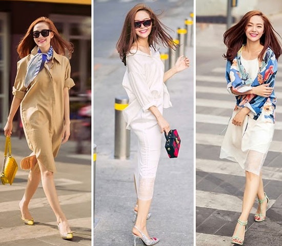 | Xu hướng áo sơ mi dáng dài được cô lăng xê nhiệt tình |
