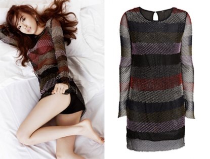 Một trang phục khác của H&M cũng chinh phục các người đẹp của làng nhạc Hàn là chiếc váy liền kẻ từ chất liệu voan đen với giá 65 USD (khoảng hơn 1,4 triệu đồng).