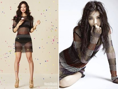 | Clara và HyunA đều rất sexy với váy xuyên thấu của H&M. |