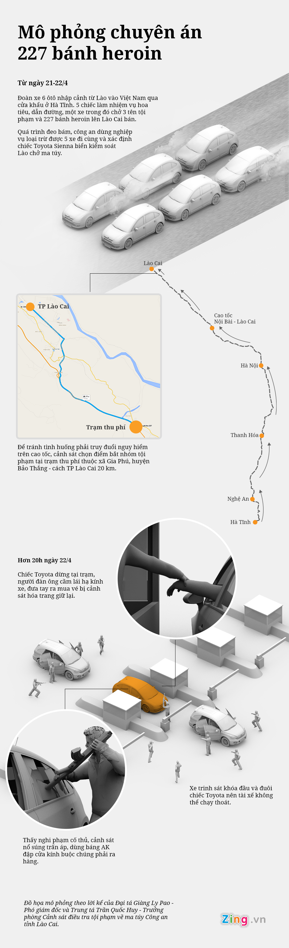 Đồ họa 3D hành trình vây bắt băng chở 227 bánh heroin