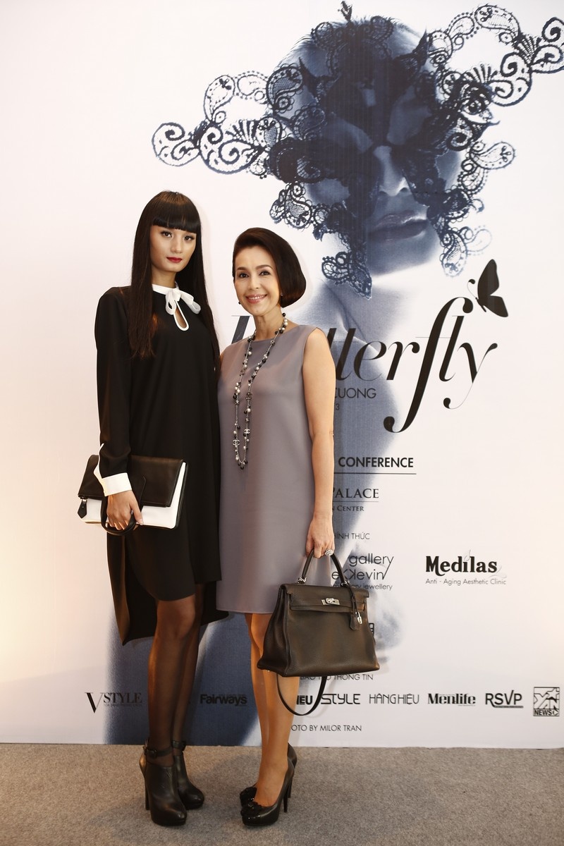 Lê Thúy là người mẫu được Đỗ Mạnh Cường dìu dắt hơn nhiều năm nay, vì thế sự xuất hiện của Lê Thúy tại buổi họp báo cũng là điều dễ hiểu. Tuy nhiên, lần này Lê Thúy khá thu hút cánh phóng viên nhờ trang phục nền nã và sang trọng. Người mẫu đến cùng NTK trên chiếc xe ô tô màu đỏ bắt mắt.