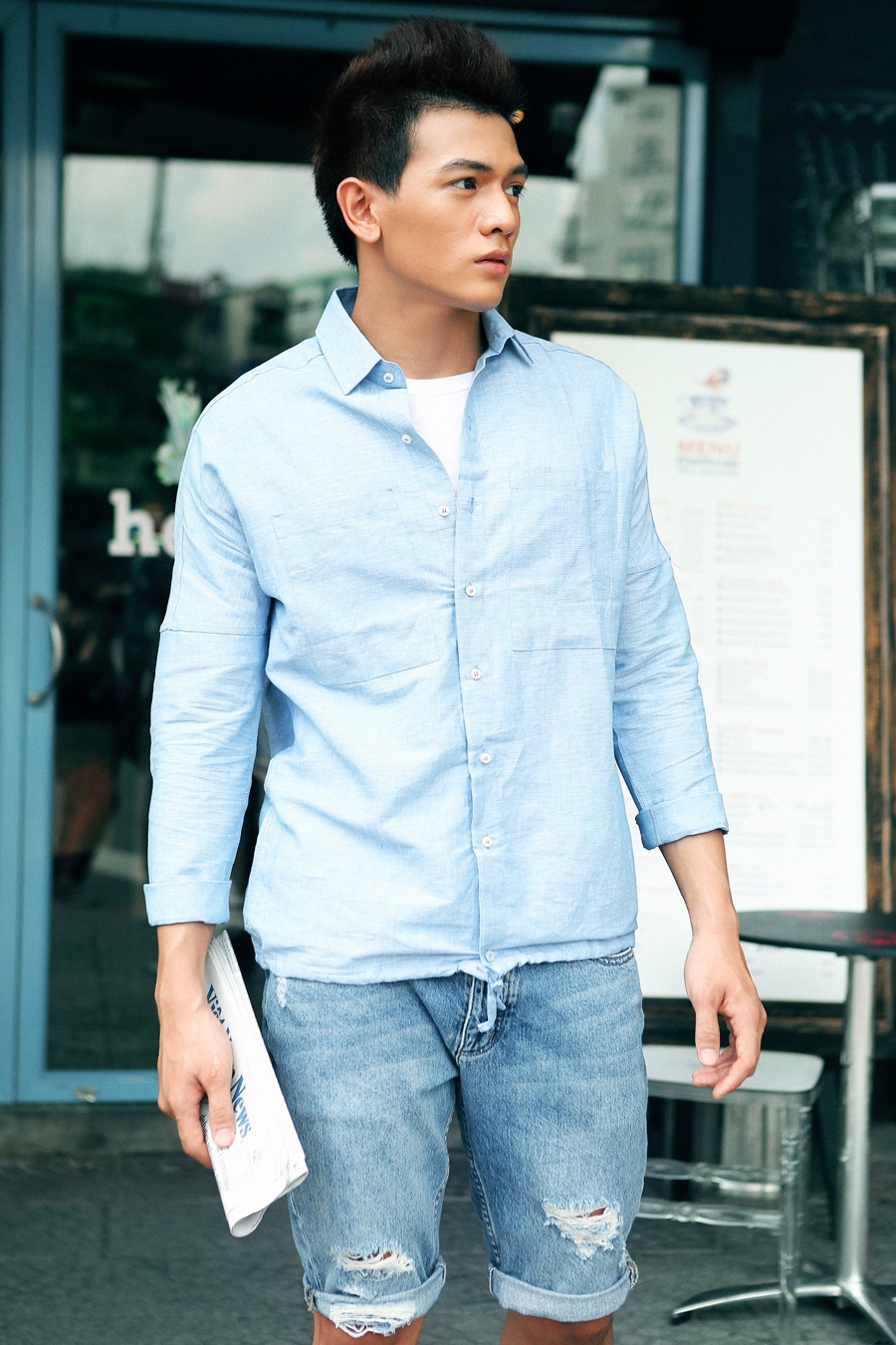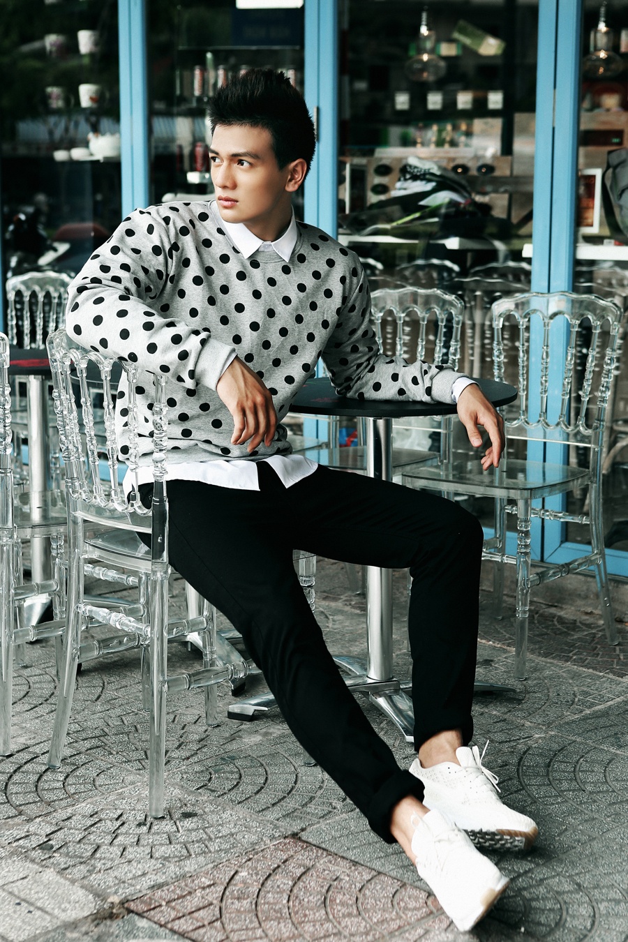 Thậm chí, chủ nhân của show thời trang Cuộc sống màu hồng còn đích thân làm đạo diễn hình ảnh, hỗ trợ "chàng thơ" chọn trang phục và định hình phong cách.